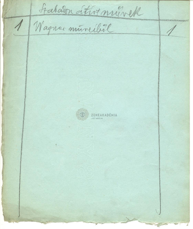 - Kézzel írt feljegyzés a Liszt-összkiadás köteteiről. (Szabadon átírt művek Wagner műveiből).Keltezés nincs.