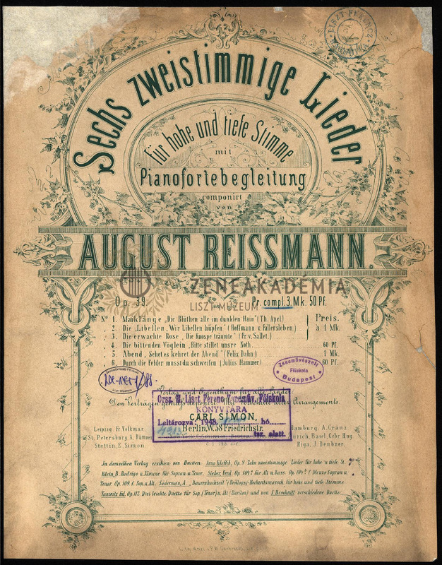 Sechs zweistimmige Lieder für hohe und tiefe Stimme mit Pianofortebegleitung. Op. 39.