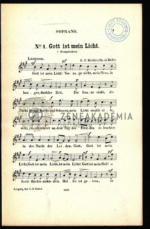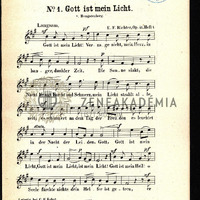 Heft I. No. 1. Gott ist mein Licht (v. Hengstenberg); 2. Kann ichs ermessen (Fr. Oser); 3. Wie der Regen auf der Au (Fr. Oser). Heft II. No. 4. Bei der Trauung (Goldhorn); 5. Herr mein Gott, sei du mein Licht (v. Oser); 6. Gieb deinen Frieden.