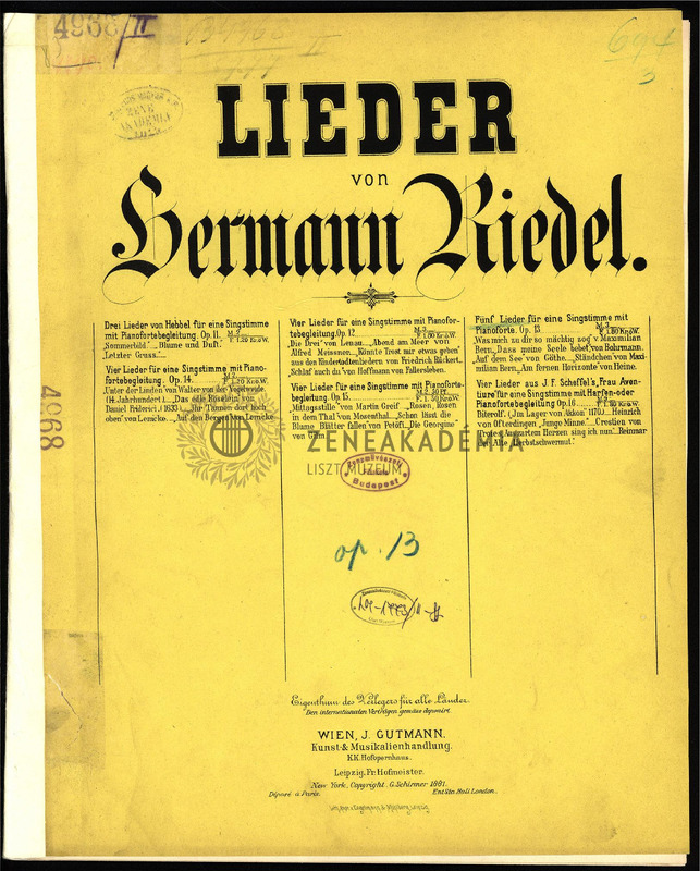 Fünf Lieder für eine Singstimme mit Pianoforte. Op. 13.