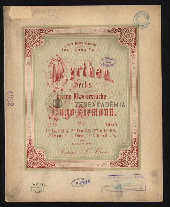 Myrthen. Sechs kleine Klavierstücke. Op. 10.