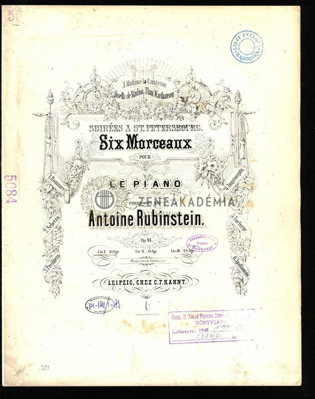 Soirées ? St. Petersbourg, Op. 44. Six Morceaux pour le Piano. Liv. I-III.