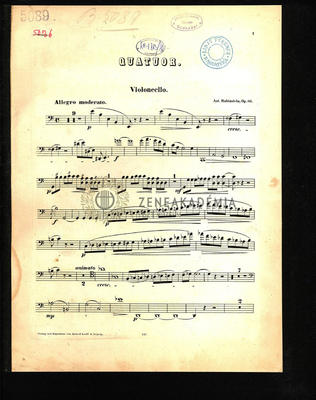 Quatuor. [Pour Violon, Alto, Violoncello et Piano.] Op. 66. [Partition et Parties.]