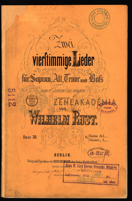 No.1. Im Walde; No. 2. Auf der Alp (Schiller). A partitúra 3. oldalának alján kéziratos feljegyzés: "Dessau im Frühjahr 1844".