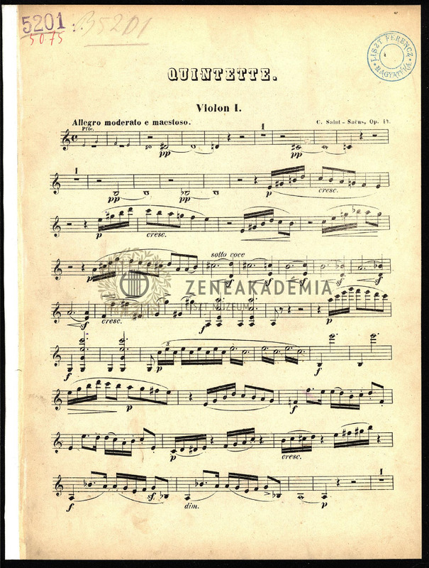 Borító, címlap nélküli példány. A partitúra utolsó két oldala és a Violon II. szólam kézírással.