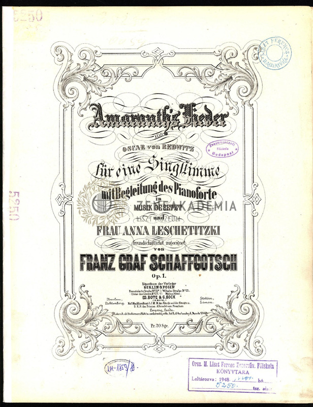 Amaranths Lieder von Oscar Redwitz für eine Singstimme mit Begleitung des Pianoforte. Op. 1. No.1-4.