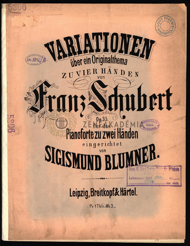 Variationen über ein Originalthema zu vier Händen, Op. 35. Für das Pianoforte zu zwei Händen eingerichtet von Sigismund Blummer.