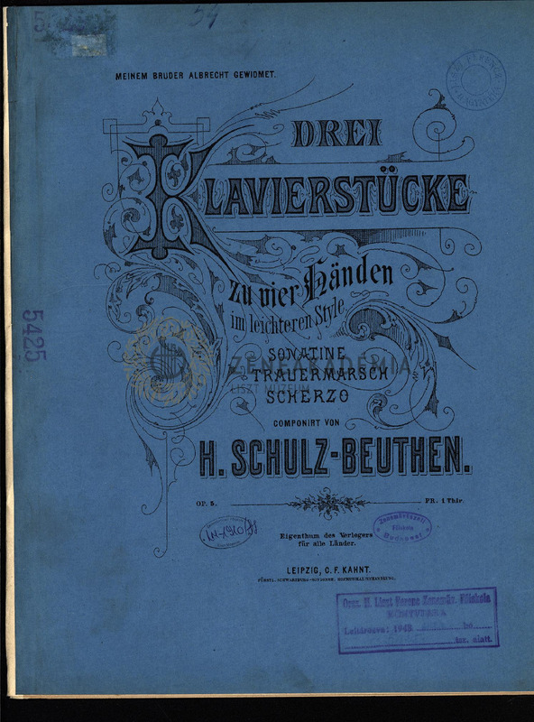 Drei Klavierstücke zu vier Händen im leichteren Style. Op. 5. Sonatine, Trauermarsch, Scherzo.