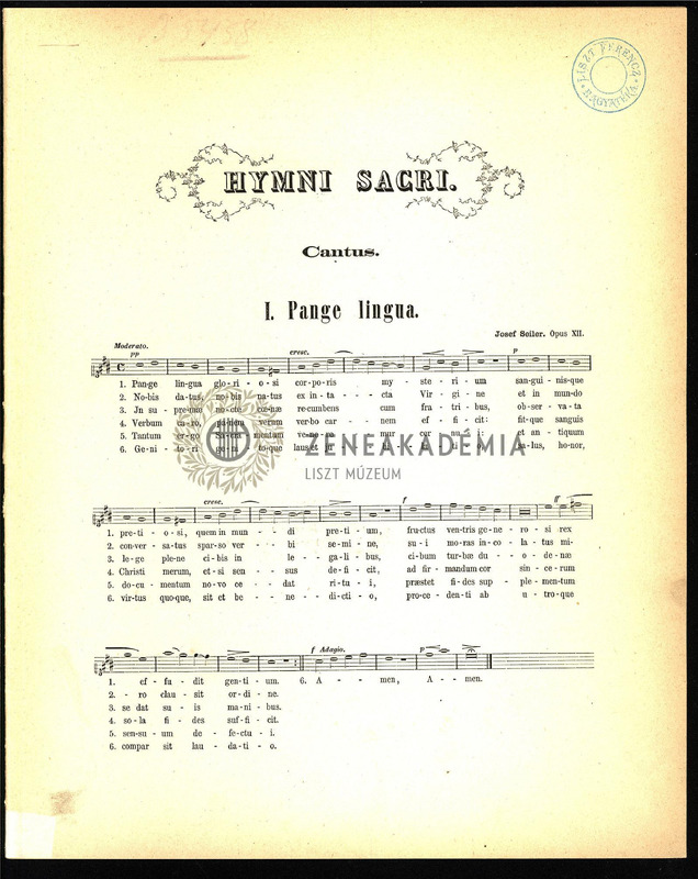 Hymni Sacri juxta modos chorales ad quatuor voces. Opus XII. Partitionis cum vocibus.