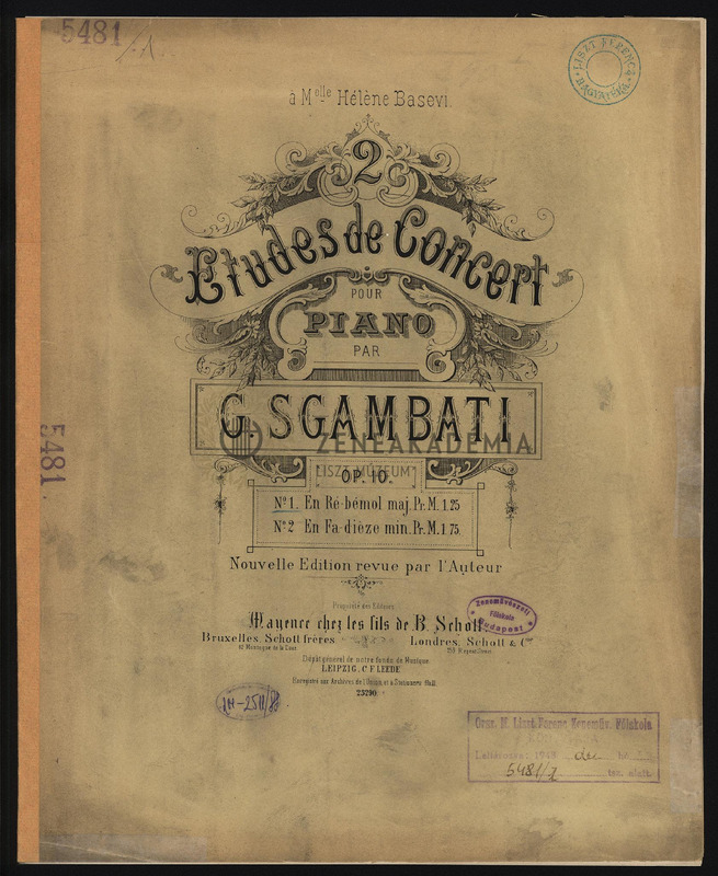 Lisztnek szóló kézírásos ajánlással: "Al venerato Maestro/ Comm. Franz Liszt/ Omaggio del suo scuolare/ G. Sgambati /Bagni di Lucca /Agosto 1881."
