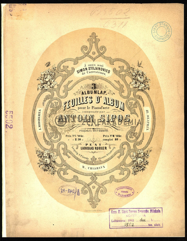 3 Albumlap, Op. 22. No. 1-3. Feuilles dAlbum pour le Pianoforte.