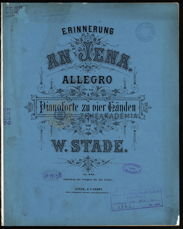 - Erinnerung an Jena. Allegro für das Pianoforte zu vier Händen.