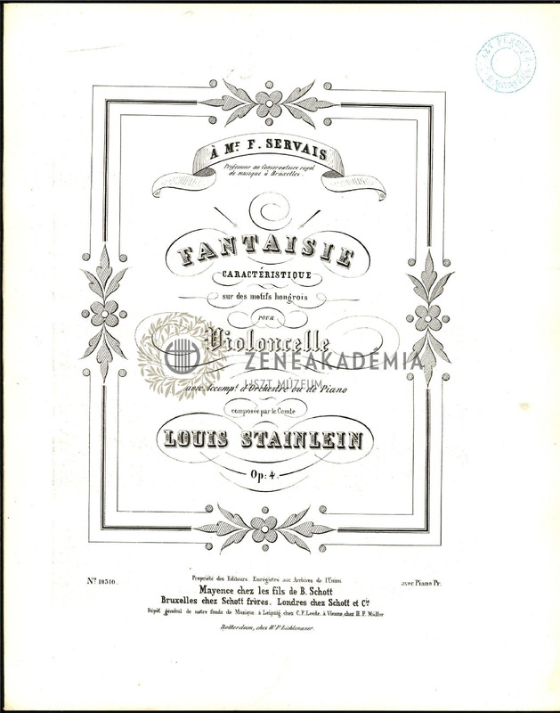 Fantaisie caractéristique sur des motifs hongrois pour Violoncelle avec Accompt. dOrchestre ou de Piano, Op. 4. avec piano. [Partition et partie de violoncelle.]