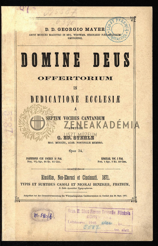 Domine Deus. Offertorium in dedicatione ecclesiae a septem vocibus cantandum, Op. 34. Partitionis.