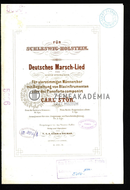 Deutsches Marsch-Lied. [Text] von Gustav Steinacker. Für vierstimmigen Männerchor mit Begleitung von Blasinstrumenten oder des Pianoforte. Arrangement für eine Singstimme mit Pianofortebegleitung.