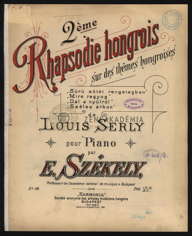 2?me Rhapsodie hongroise sur des th?mes hongroises de Louis Serly pour piano.