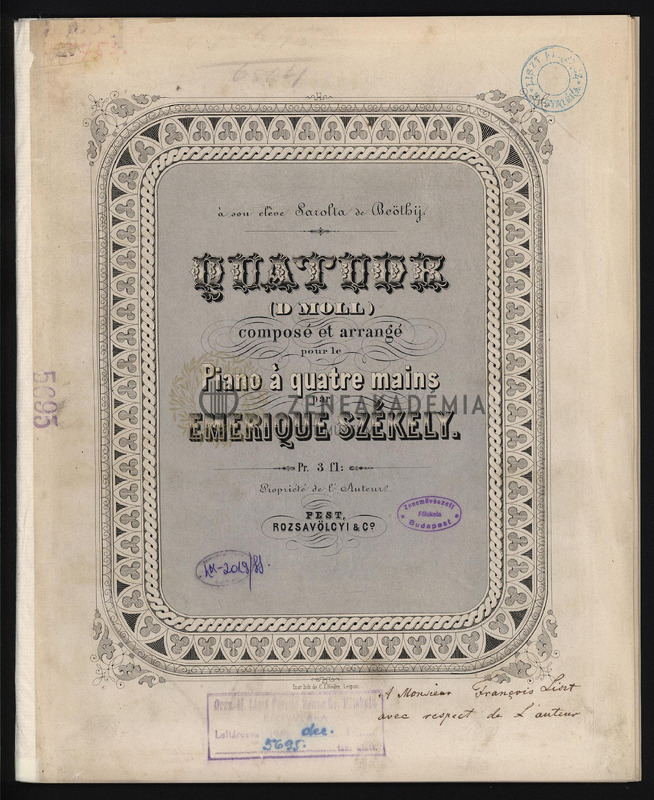 Lisztnek szóló kézírásos ajánlással: "? Monsieur François Liszt / avec respect de Lauteur."