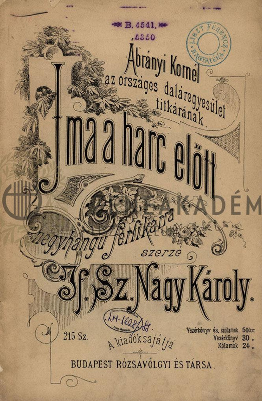 Ima a harc előtt. Négyhangú férfikarra. 215. sz. [Partitúra és énekszólamok.]