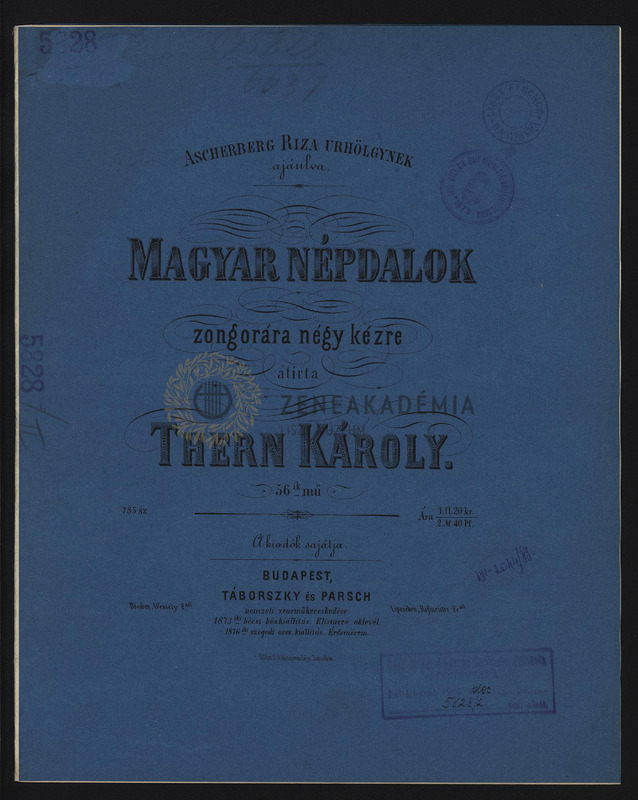 Magyar népdalok zongorára négy kézre, 56ik mű.