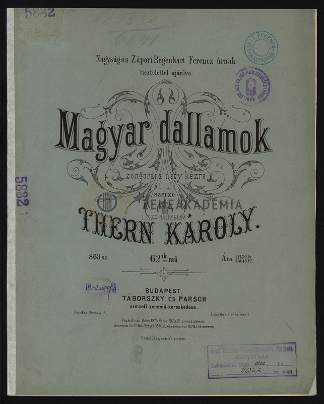 - Magyar dallamok zongorára négy kézre, 62ik mű.