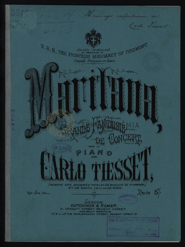 Lisztnek (?) szóló kézírásos ajánlással: "Hommage respectueux de / Carlo Tiesset."