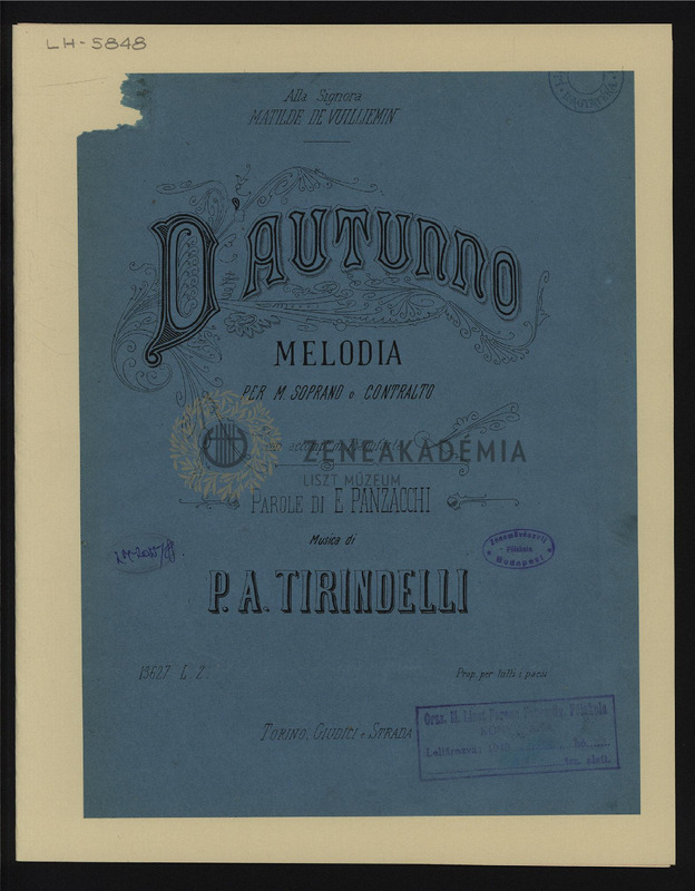 Dautunno. Melodia per M. Soprano o Contralto con accompto di Pianoforte.