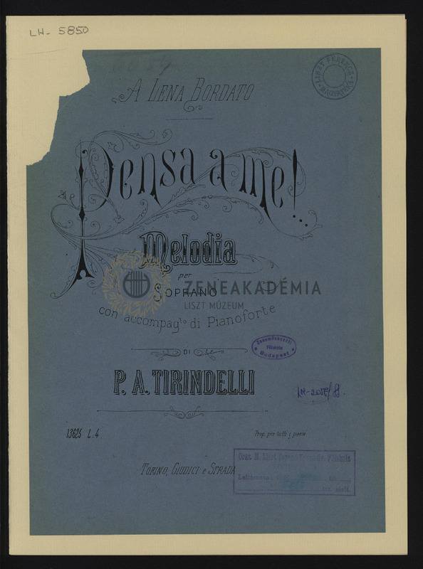 Pensa a me! Melodia per Soprano con accompto di Pianoforte.