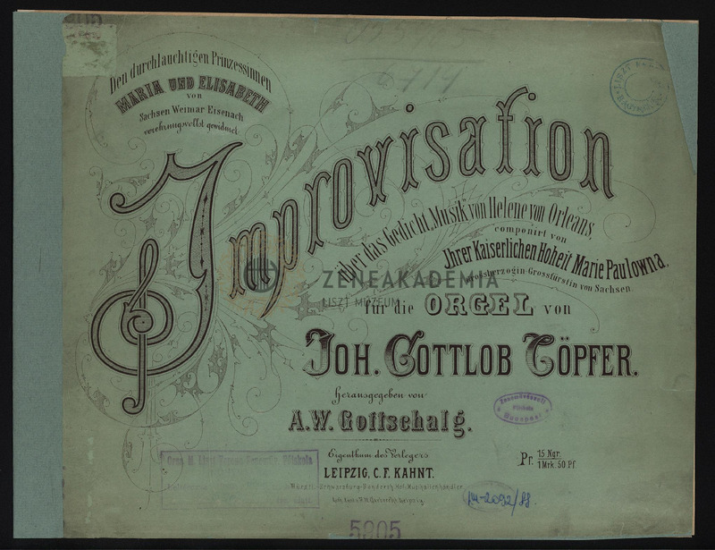 Improvisation über das Gedicht "Musik" von Helene von Orleans, componirt von für die Orgel von Joh. Töpfer.