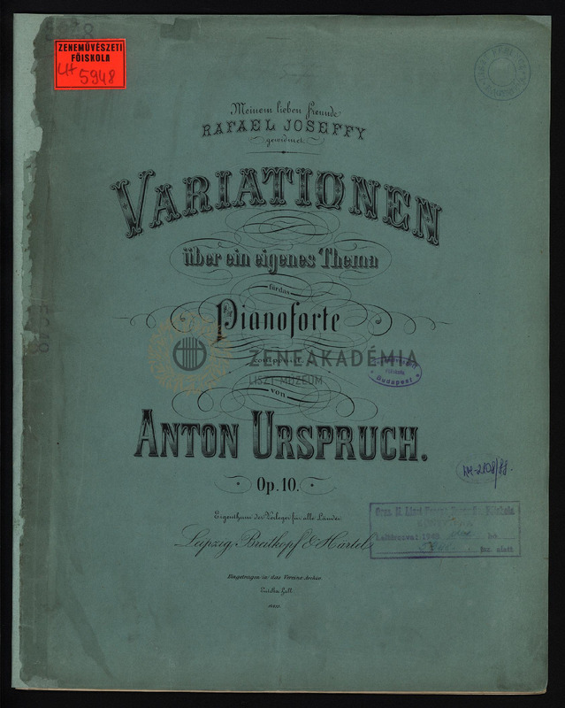 Lisztnek szóló kézírásos ajánlással: "Herrn Dr. Franz v. Liszt / in aufrichtiger Verehrung / sein / dankbarer Schüler / Anton Urspruch / Frankfurt a/Main, 5. Juni 1878."