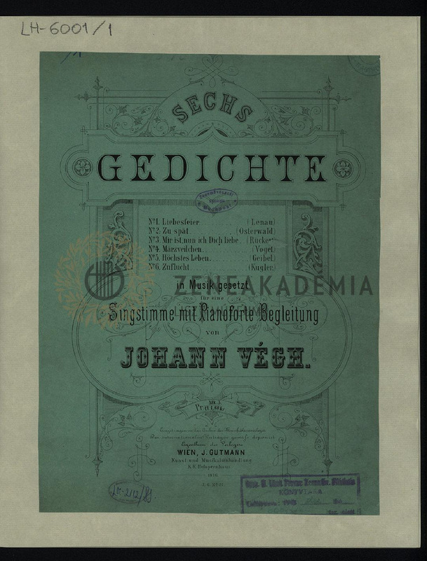 Sechs Gedichte in Musik gesetzt für eine Singstimme mit Pianoforte Begleitung von Végh [János] Johann.