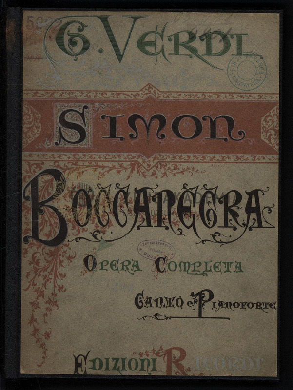 Simon Boccanegra. Melodramma in un prologo e tre atti de F. M. Piave. Opera completa per Canto e Pianoforte. Riduzione di Michele Saladino.