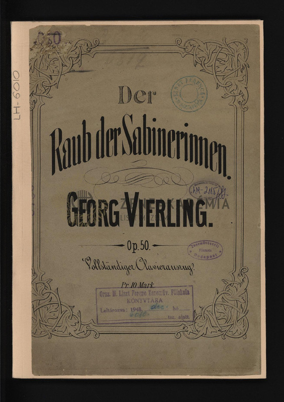 Der Raub der Sabinerinnen von Arthur Fitgen, für Chor, Solostimmen und Orchester, Op. 50. Vollständiger Klaverauszug.