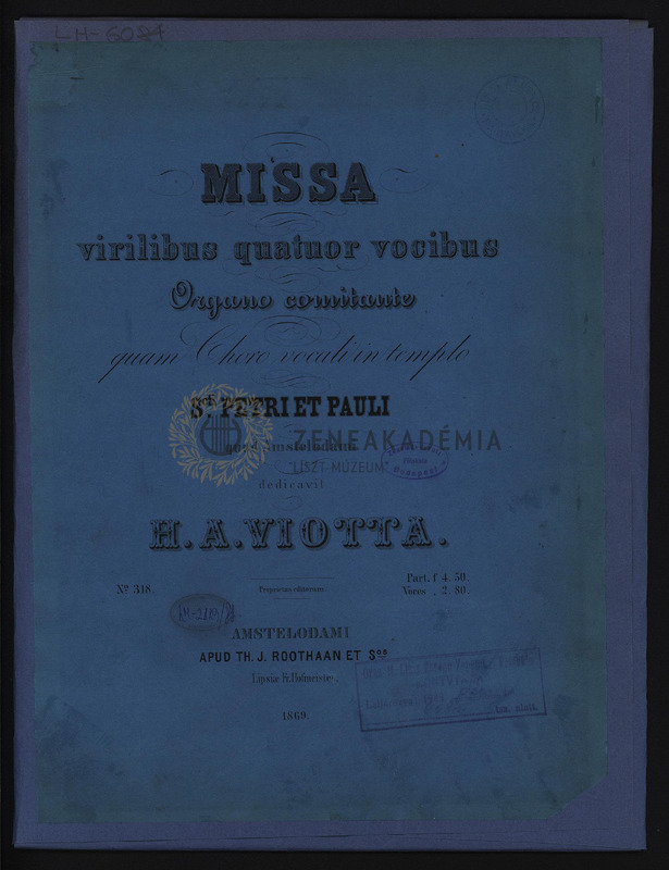 - Missa virilibus quatuor vocibus Organo comitante. Part[itura].