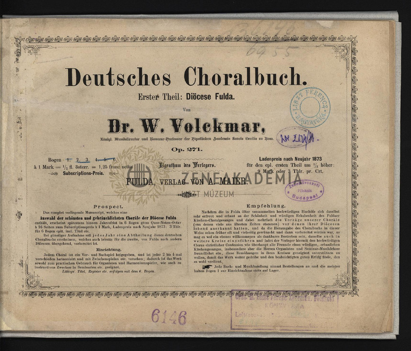 Deutsches Choralbuch. Erstes Theil: Diöcese Fulda. Op. 271.