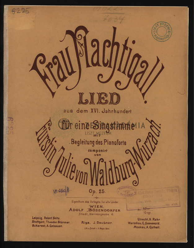 Frau Nachtigall. Lied aus dem XVI. Jahrhundert für eine Singstimme mit Begleitung des Pianoforte. Op. 25.
