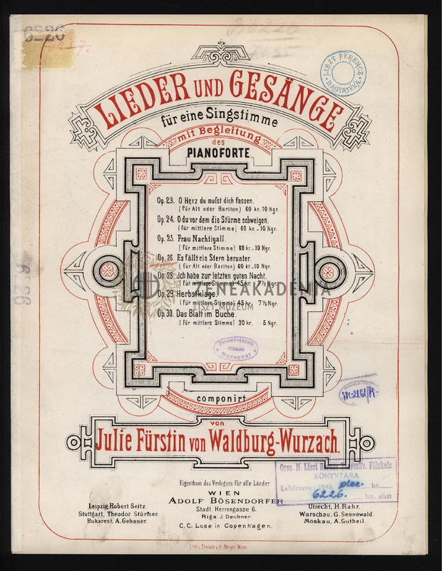 Lieder und Gesänge für eine Singstimme mit Begleitung des Pianoforte. Op. 26. Es fällt ein Stern herunter (für Alt oder Bariton).