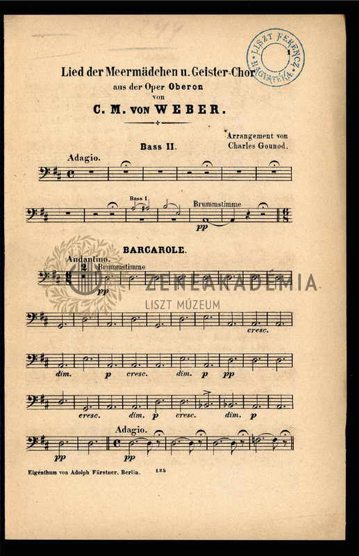 Lied der Meermädchen und Geisterchor aus der Oper Oberon. Für gemischten Chor arrangirt von Charles Gounod. Partitur u[nd] Stim[men].