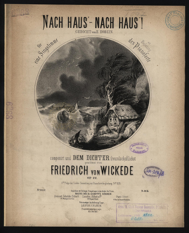 Nach Haus - nach Haus! Gedicht von E. Hobein für eine Singstimme mit Begleitung des Pianoforte. Componirt und dem Dichter freundschaftlichst gewidmet von Friedrich von Wickede. Op. 22.