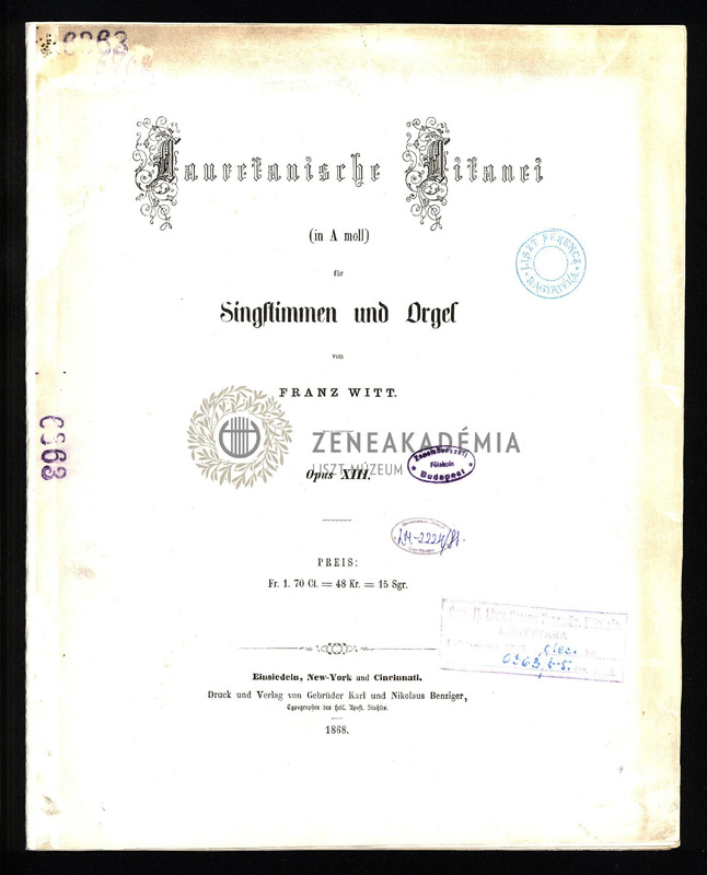 Lauretanische Litanei (in A moll) für Singstimmen und Orgel. Opus XIII. [Partitur und Stimmen].