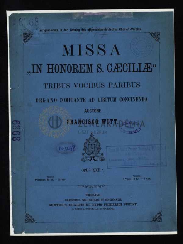 Missa "In honorem S. Caeciliae" tribus vocibus paribus organo comitante ad libitum concinenda, Opus XXIIa.