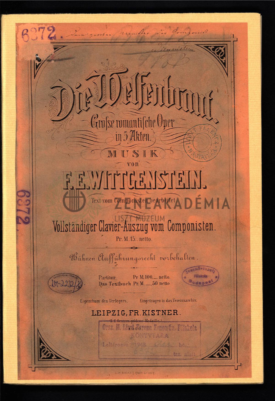 Lisztnek szóló kézírásos ajánlással: "dem grossen meister der Componist/ Wittgenstein".