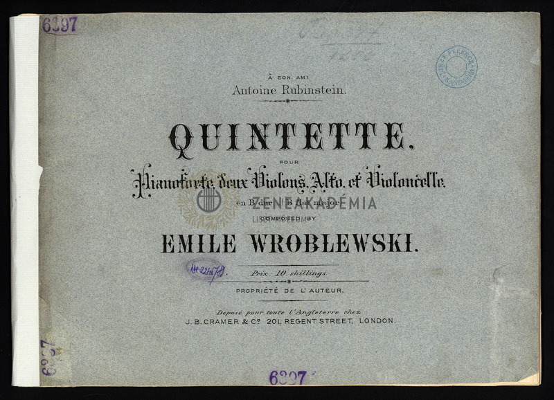 Quintette, pour Pianoforte, deux Violons, Alto et Violoncelle, en B dur (B flat major). [Parties.]