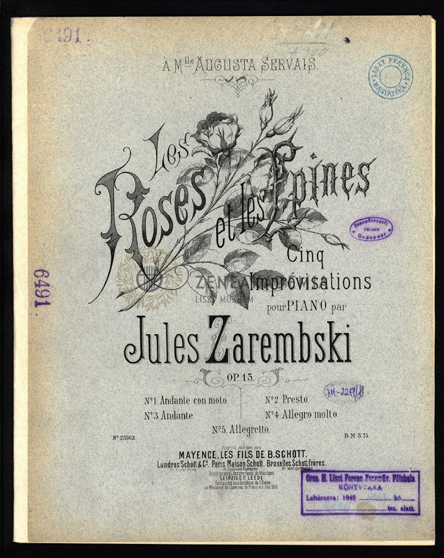 Les Roses et les Épines. Op. 13. No. 1-5. Cinq Improvisations pour piano.