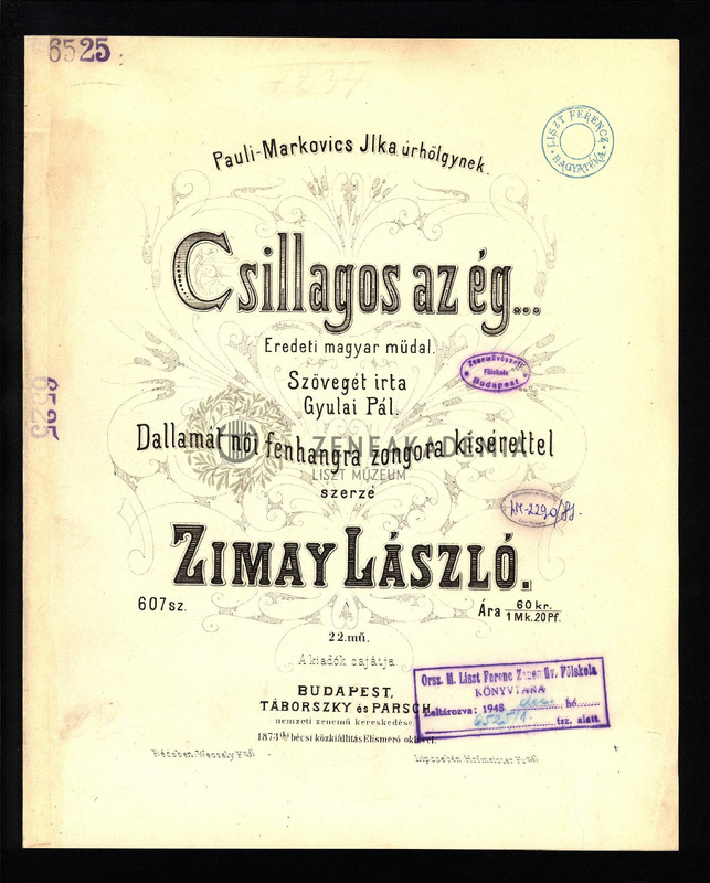 Csillagos az ég...; Eredeti magyar müdal. Dallamát női fenhangra zongora kisérettel.