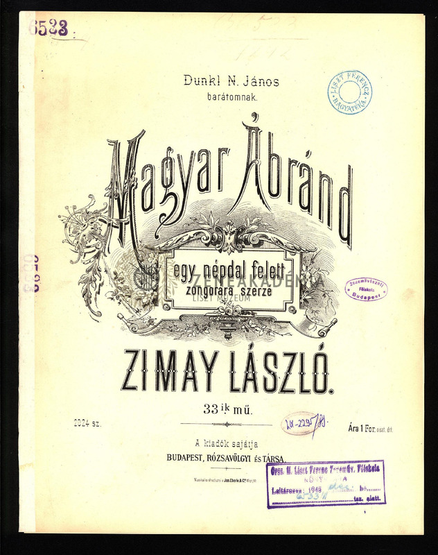 Magyar ábránd egy népdal felett zongorára, 33ik mű.