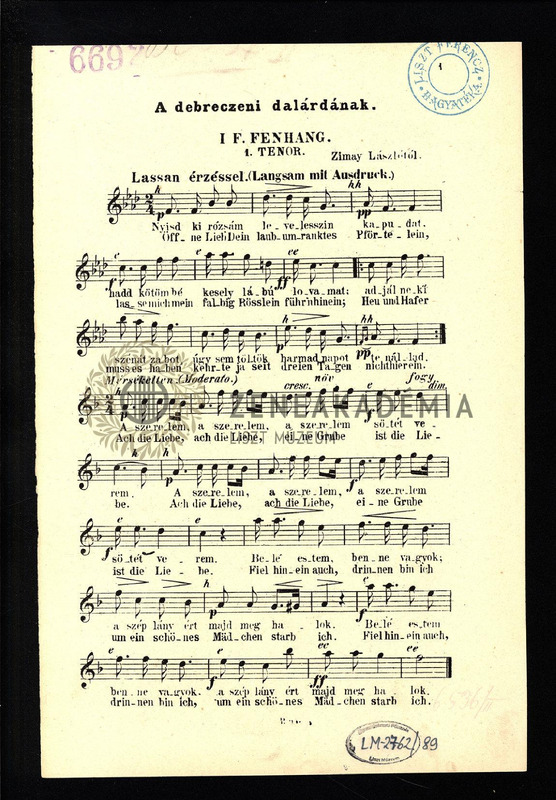 a. Nyisd ki rózsám - Öffne Lieb; b. A szerelem, a szerelem - Ach die liebe; c. Kis kertemben virit a rózsa- Rosen blühn in meinem Gärtchen; d. Haragszom az olyan szóra - Hasse jede böse Rede. A címlapon a No. 1. adatai is. Sérült partitúra és hiányos szólamanyag; csak 1. Tenor szólam.