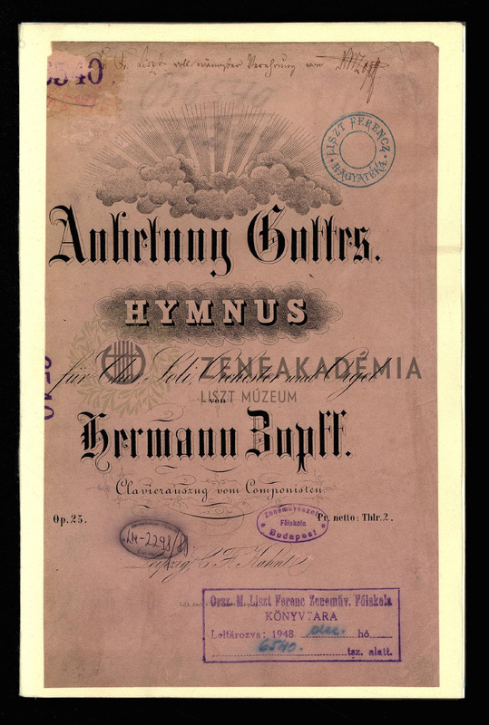 Lisztnek szóló kézírásos ajánlással: "Dr. Fr. Liszt voll wärmster Verehrung von H. Zopff".