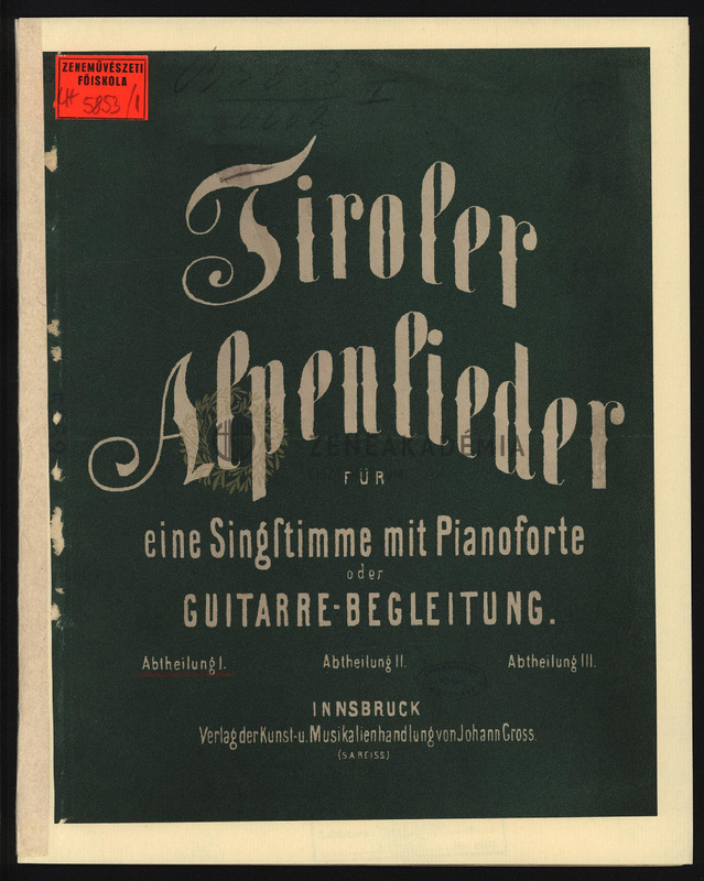 Tiroler Alpenlieder für eine Singstimme mit Pianoforte oder Guitarre-Begleitung. Abtheilung I-II, IV-V.