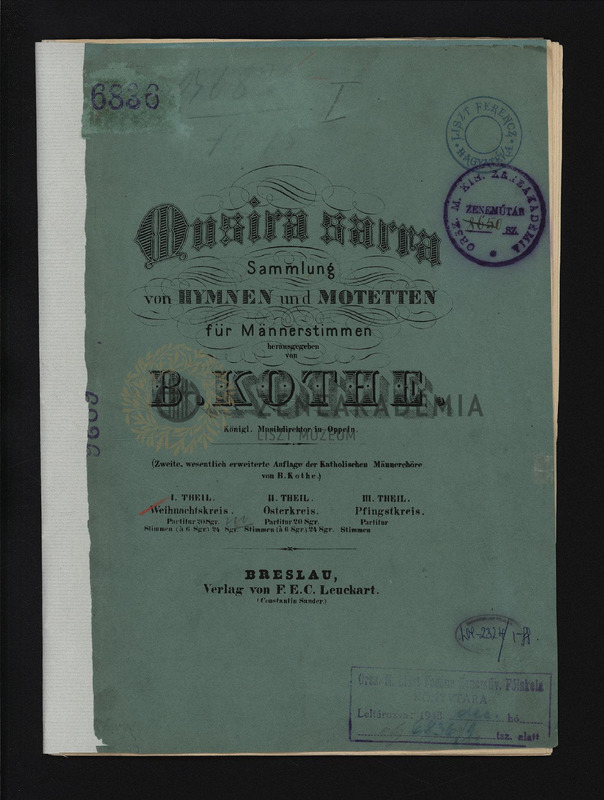 - Musica sacra. Sammlung von Hymnen und Motetten für Männerstimmen. Theil I. Weihnachtskreis. No.1-41. Partitur.