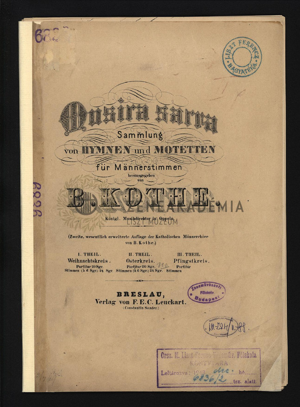 - Musica sacra. Sammlung von Hymnen und Motetten für Männerstimmen. Theil II. Osterkreis. No.42-87. Partitur.
